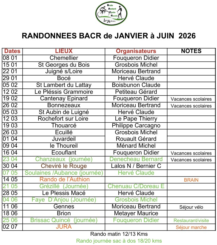 Rendez-vous le jeudi matin au parking du complexe sportif Jean-Cherré à Brain sur l'Authion.